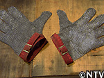 ためらっている2人に手渡されたのが、鉄製のマグロ解体手袋。