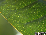 葉や皮には『油胞』と呼ばれるものがあり、レモンの香りのもと『シトラール』が詰まっている。その為、折ったり傷つけたりすると『油胞』が破れ、中から香り成分が出る。 |