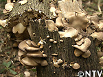 と、山間の開けた場所、アカメガシワの倒木に、真冬にも関わらず、美味そうなキノコがビッシリと。