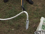 では、本物の前にまずはハブに見立てたロープで捕獲の練習。