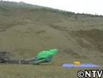 巨大カエルは、見事大ジャンプを果たしたが、そのまま勢い余って、ひっくり返り、目標だった5m先の子カエルの元へ! |