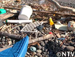 波は強く浜に打ち付け、漁に出るどころではなく、爆弾低気圧が通過した後には、波に乗って浜に打ち上げられた、無数の漂着物が残されていた。その中には、ブラウン管テレビの一部やスニーカーなど様々な日用品も。