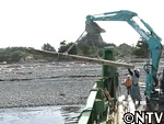 材木は潮が満ちてこない位置まで上げ、今後、少しずつトロッコで入り江に運ぶことに。