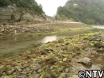 この日は大潮、潮の満ち引きの差が大きく、満潮時の水位と比べると、干潟のように底が見えるほど水面が下がっていた。