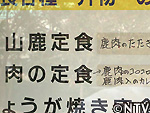 店先のメニューには、桜山鹿定食、鹿肉のたたきの文字が。