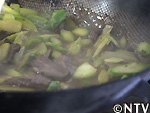 水溶き片栗粉でとろみをつけ、オイスターソース、酒、醤油などで味付け。