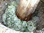 餅といえば杵も必要だが、これは島にいくらでもある流木で代用。