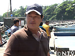 両手に持った石を打ち、「うーうー」と声を出しながら泳ぎ、網に生き物を追い込んでいく。すると、網に入ったのは…