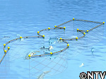 乱獲を防ぐ漁で、陸の近くに固定された網は、海流に沿って回遊する魚が入りやすい場所に入口が設けられている。