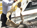 5mクラスのサメのアゴだというが、その大きさは達也と城島二人の顔が、すっぽりと入ってしまうほど。