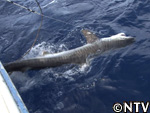 本日、捕えた1匹目のイタチザメは推定3m。