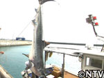 サメが暴れぬよう慎重に船を進めること2時間、港に到着。 |