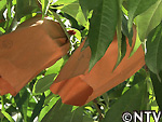 池宗さん「岡山の桃は、収穫するまで袋をかけたまま」 |