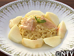 仕上げに、フルーツと相性の良い生ハムを添えて、“白桃の冷製パスタ"の出来上がり。