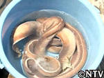 コイツが危険を感じると身体から出すネバネバ物質“ムチン"にも、殺菌効果があるということで、その仕掛けで、再びヌタウナギを捕獲。 |