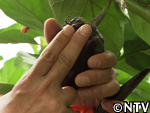 中出(弟)さん「なすを持って、幅が指2本くらい入れば収穫できる」