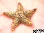 生きているヒトデを見るのは初めてだという明雄さんは興味津々。 |