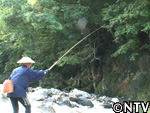 天野さんが、川の流れに乗せ、微妙に毛鉤を動かし、魚を誘う。すると!