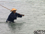 しかし、リールが無いため、川の中へ引きずり込まれていく天野さん。