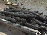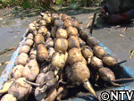 泥の重みも加わり、一舟で80kgほどにもなる。 |