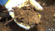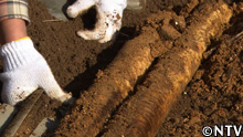 パイプの中に入っていた土は、畑の色が濃い土と違って、色が薄い。
