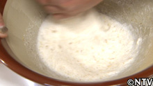 豆腐を潰し、そこに自然薯、卵を加え、空気を入れながら全体を混ぜる。