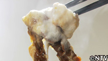 そんな強い粘りのため、皿に盛る時は、なんとハサミで切る!そして、味は、