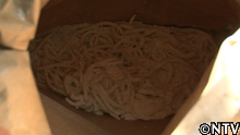 しかし、たまたまお客さんが途切れた時間に、茹で上ってから30分経って残ってしまった麺は、コシがなくなるために捨ててしまうのだという。 |