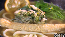 『讃岐うどん~太刀魚天・ニラ天・ダイダイ・水菜のせ』の完成!!