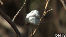 すると、砂浜の一角、枯れた植物の茎にいくつもの白い綿毛が。