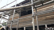 廃屋から運んだスダレを1階の壁板代わりに掛けていくが…。 |