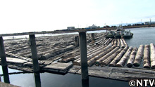この貯木場には、海外から運ばれた木材がおよそ1000本。