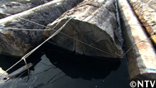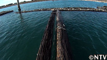 海に浮かぶ丸太の中には、樹齢800年、直径100cmを超えるものも。