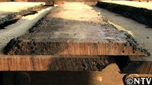 水の上は日光や雨風、水中は海水やフナクイムシによって傷んでいる。