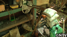 というのも山の斜面には、雨戸に使った引き違い戸を見つけた小屋、さらに山の上の廃屋でも、かつての島民が使っていた、様々な道具や農耕具が残されていた。 |