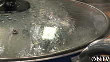 アルミホイルでしっかりと包み込み、お湯をはった鍋へ。