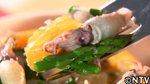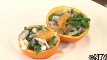 まずは、デコポンのドレッシングを合えた『イカとアスパラのマリネ』。