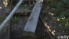 そして、横木に余った枕木を括り付け、重りにする。