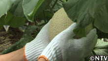 その為、1つのハウス内にある約300玉全てに袋を被せるという。 |