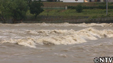 多摩川の水量も増加し、濁流となった。