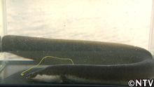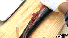 ウナギは苦手な様子で一人パニックに。