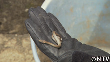 バケツの中に手に乗るほど小さなヘビの姿が。
