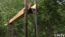 舟屋の余った木材をかき集めて組み上げた木樋、
