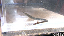 ドジョウに食い付いたのは、ダイナンアナゴ(別名・クロアナゴ)の子供。