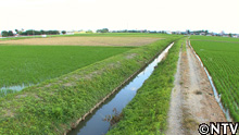 ドジョウのいるポイントは、田んぼの間にある用水路。