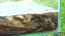 大量に捕れたドジョウは、観賞魚のエサに使われる。 |