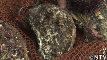 すると、その先には、網に入ったいくつもの牡蠣やウニが。