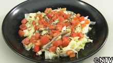 そして、茹でたキャベツに、マテ貝とトマトを乗せて、