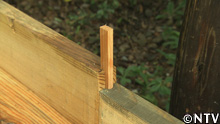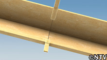 接合部分に溝を掘り、サネと呼ばれる栓を押し込む工法。