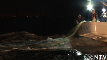 網の最後に、目印となるブイを浮かべ、後は網に魚がかかるのを待つだけ。 |